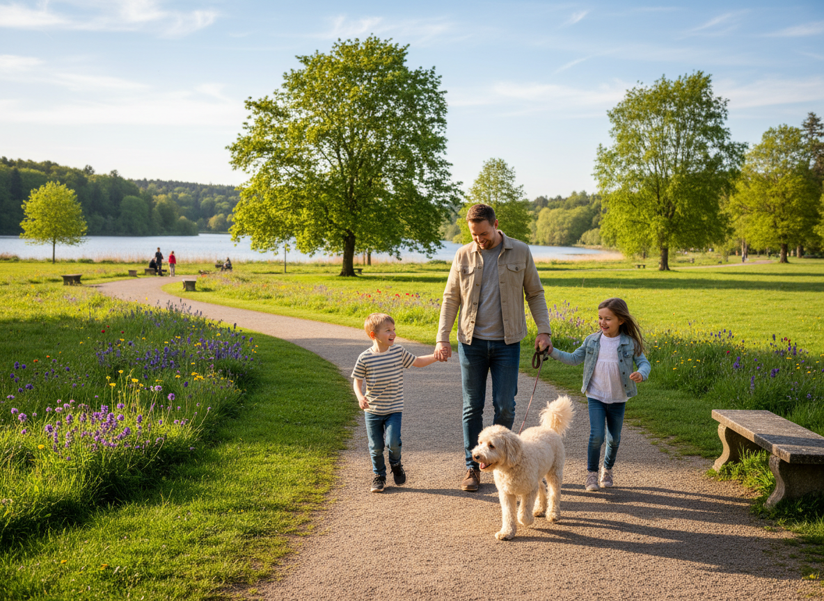 Are Australian Labradoodles a good fit for Stonegate's large-lot, family-oriented neighborhood? Yes. Large fenced yards, quiet streets, and school-age children households match the Australian Labradoodle's temperament and exercise needs precisely — they're calm indoors, energetic in a yard, and bred for family life.