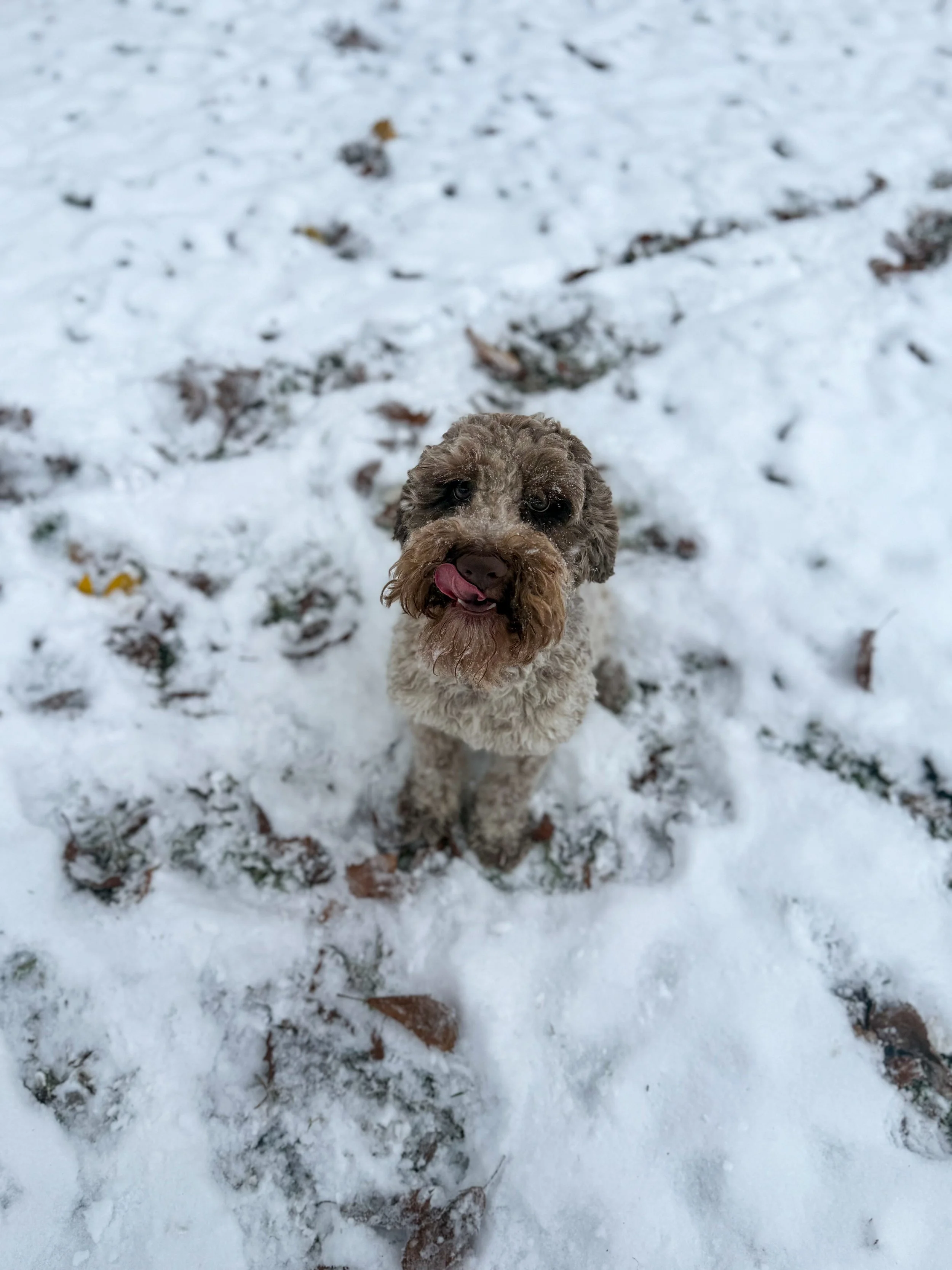 Sarge has the funniest habits. Every winter, he eats snow. Not just a little taste—he chomps mouthfuls like it's his favorite snack. We have no idea why, but it cracks us up every time.